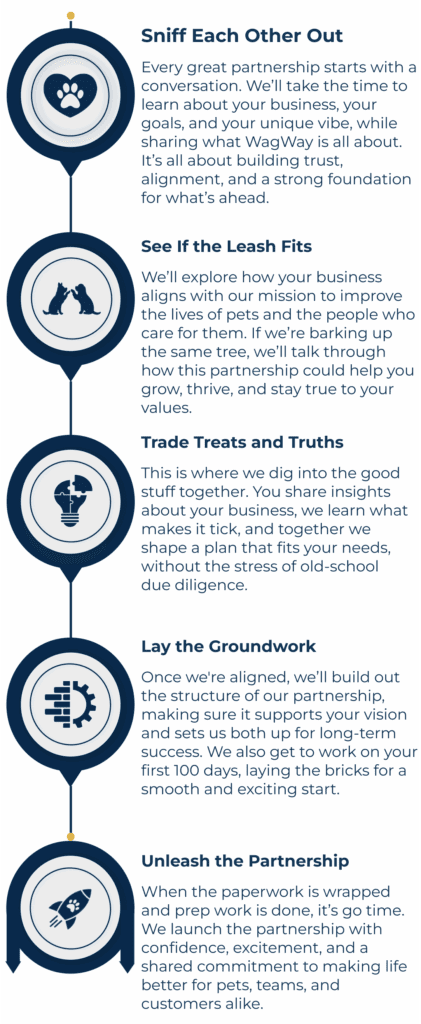 Being a part of the WagWay family means more than just being a name in our portfolio. It’s about partnership—working together to unlock new opportunities, enhance processes, and leverage the latest innovations in pet care. We provide the resources you need to continue delivering exceptional service while helping your business thrive in a dynamic and competitive market.